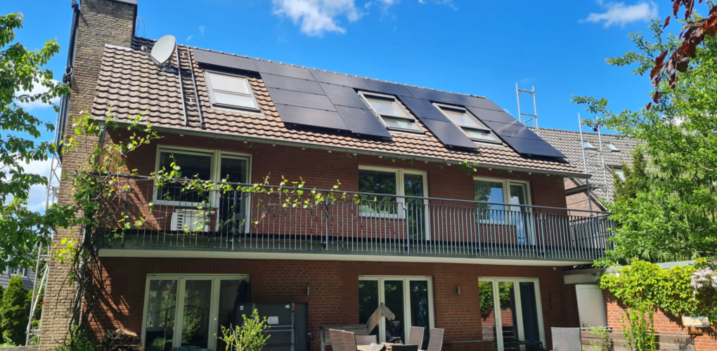 In Münster haben wir eine leistungsstarke Photovoltaikanlage mit integriertem Speichersystem realisiert, die besonders auf verschattete Dachflächen abgestimmt ist.