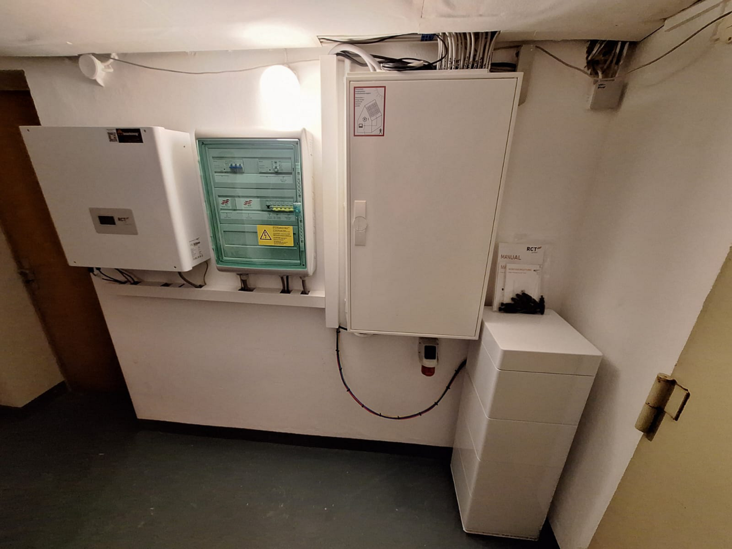 Die Kombination aus einem RCT DC 10.0 Wechselrichter und einem 7,6 kWh Speicher sorgt für eine zuverlässige Eigenversorgung mit Solarstrom – bei einem prognostizierten Jahresertrag von rund 12.000 kWh. Besonders hervorzuheben ist der integrierte RCT Power Switch, der im Inselbetrieb eine Notstromversorgung auf drei Phasen sicherstellt. Damit bleibt die Stromversorgung auch bei Netzausfall stabil.