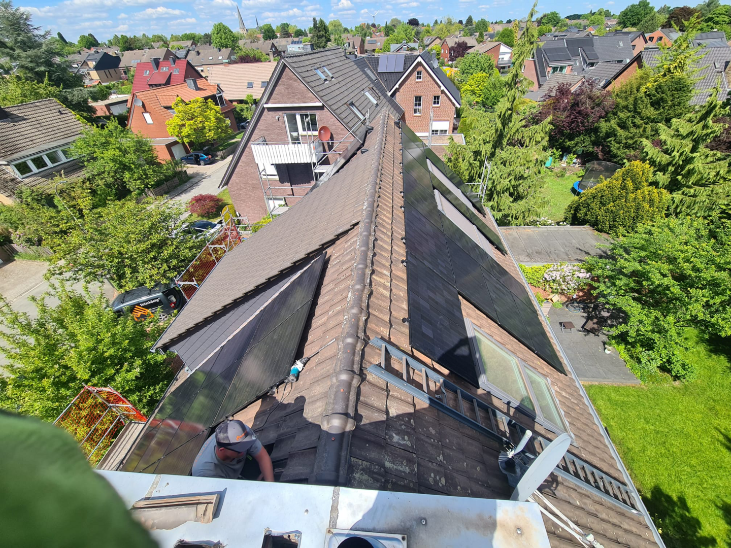 In Münster haben wir eine leistungsstarke Photovoltaikanlage mit integriertem Speichersystem realisiert, die besonders auf verschattete Dachflächen abgestimmt ist. Installiert wurden 35 monokristalline Module mit je 450 Wp, ergänzt durch 21 BRC Optimierer. Die Gesamtleistung der Anlage beträgt 15,75 kWp.